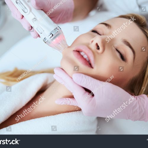 A needle-free device that shoots Hyaluronic Acid (HA) into the lips using an extreme amount of air pressure in order to force the HA through the outer layer of skin.